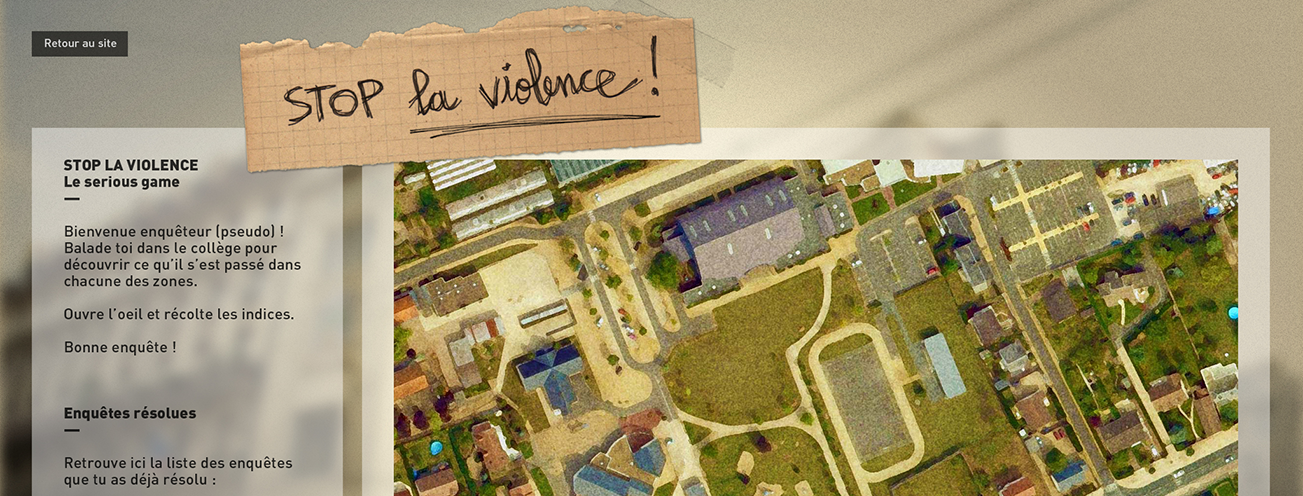 Ce serious game sensibilise les collégiens aux harcèlement et cyberharcèlement et permet aux éducateurs de débloquer la parole des jeunes victimes, des acteurs et témoins de la violence.