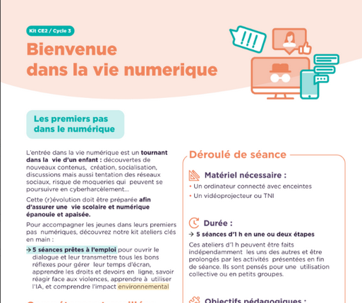 Un kit clé en main avec 5 séances prêtes à l’emploi pour ouvrir le dialogue et transmettre aux enfants tous les bons réflexes pour :