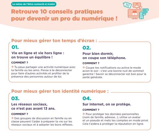 Ce guide pratique et interactif permet aux parents d'aborder en famille les grands enjeux de la vie numérique d’un jeune collégien :